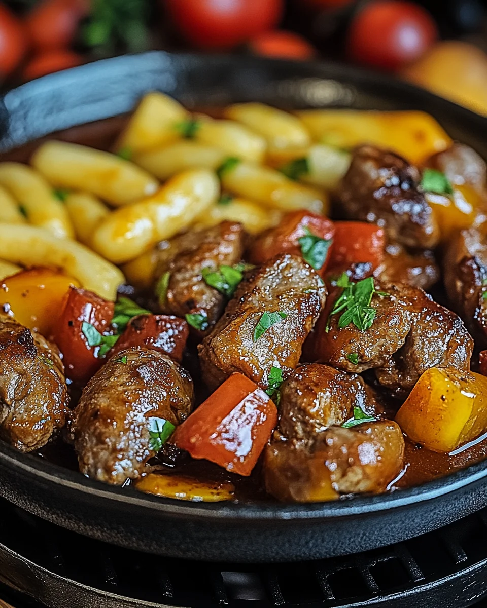 Dieser köstliche Schaschlik-Topf aus dem Ofen vereint zartes Rindfleisch, frisches Gemüse und würzige Aromen in einem einzigen Gericht. Perfekt für Familienessen oder gesellige Abende, bringt dieses Rezept das Beste aus der herzhafteren Küche auf den Tisch. Die Kombination aus saftigen Zutaten und einfacher Zubereitung macht diesen Schaschlik-Topf zu einem Highlight jeder Mahlzeit.